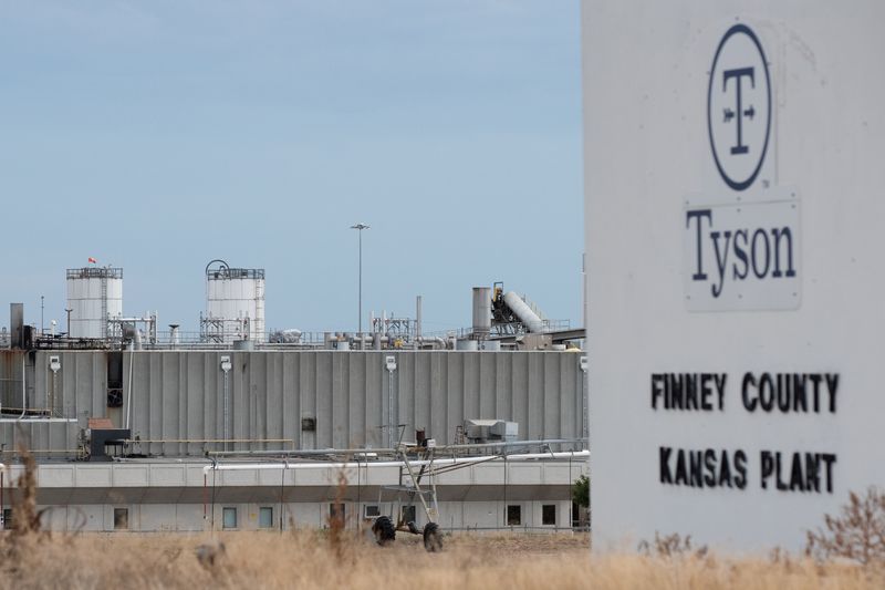 (C) Reuters. FILE PHOTO: The exterior of the Tyson Fresh Meats processing plant is seen three days after a fire heavily damaged the facility in the Finney County town of Holcomb, Kansas, U.S. August 12, 2019. REUTERS/Adam Shrimplin/File Photo